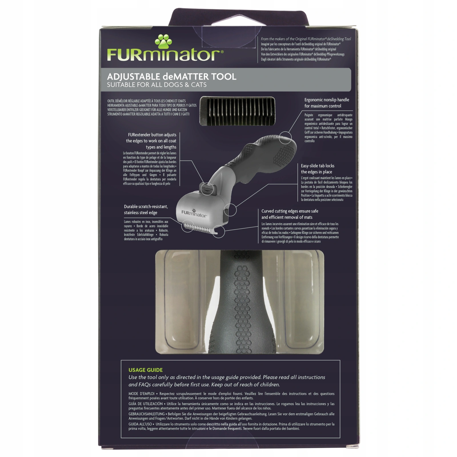 Ayarlanabilir FURminator kolayca ve güvenle yumaklar kaldırır. , farklı hayvan türlerinde hem kısa hem de uzun yün türlerinin çoğunda etkilidir. Kat türünden bağımsız olarak, her zaman kuru kat üzerinde bir dilme kesici kullanın . FURminator kullanın kullanılmak üzere önerilerine göre. hayvana büyük rahatsızlık verebilir ve kontrol edilmezse çıkarılması zorlaşır. , karışık yünle başa çıkmaya ve karışıklıkları tamamen gidermeye yardımcı olur.